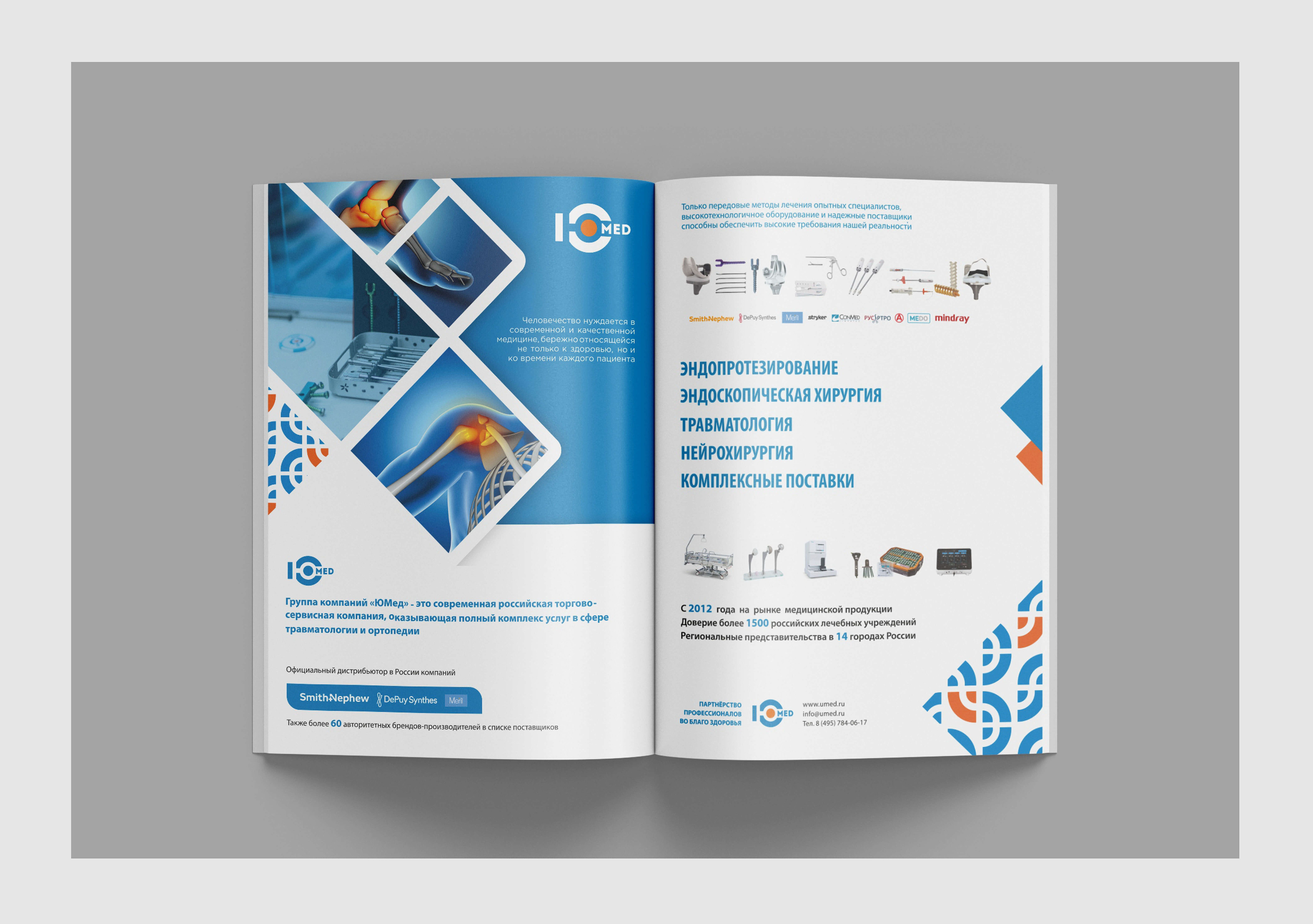 Дизайн разворота журнала компании "ЮМЕД"