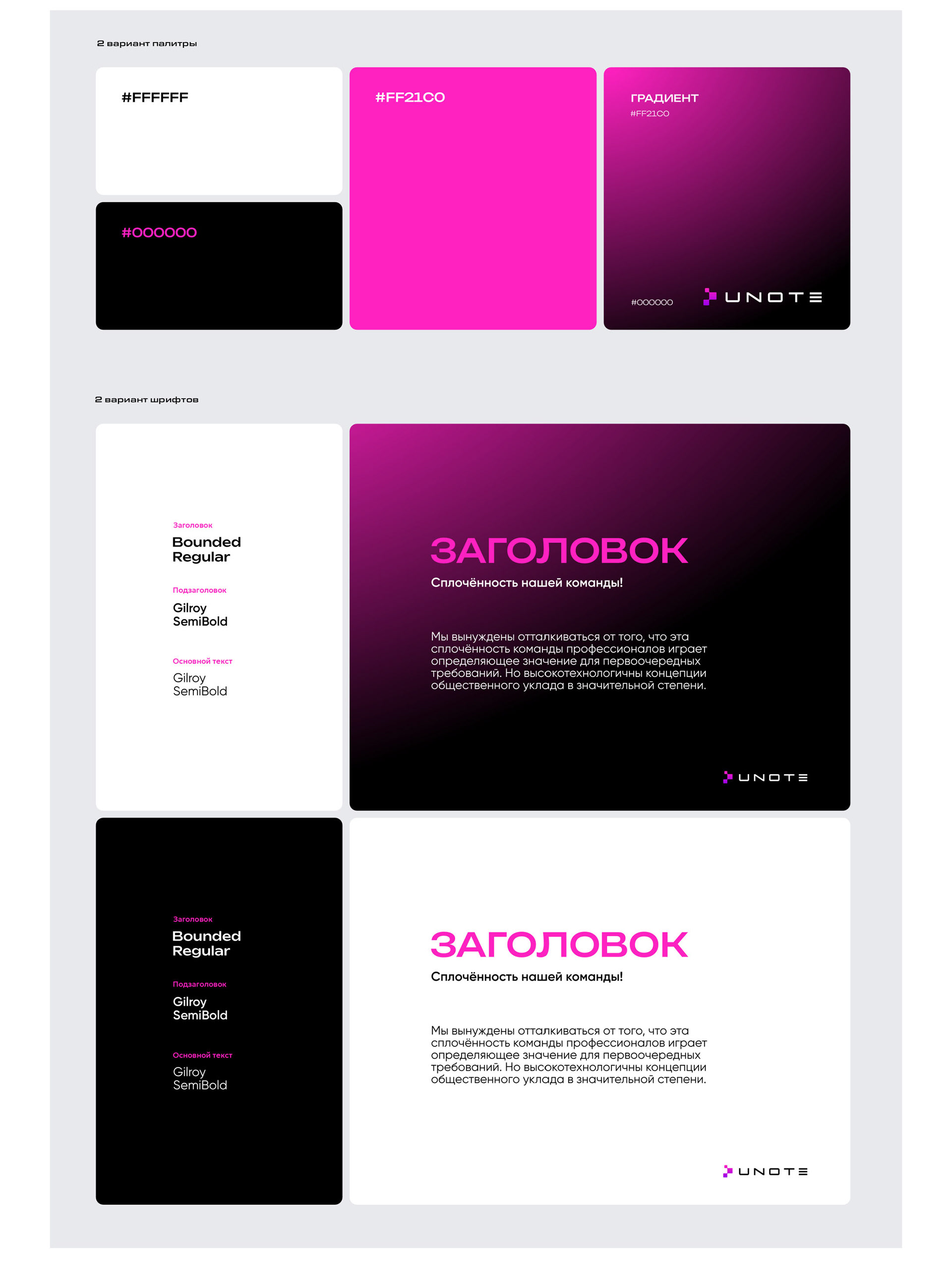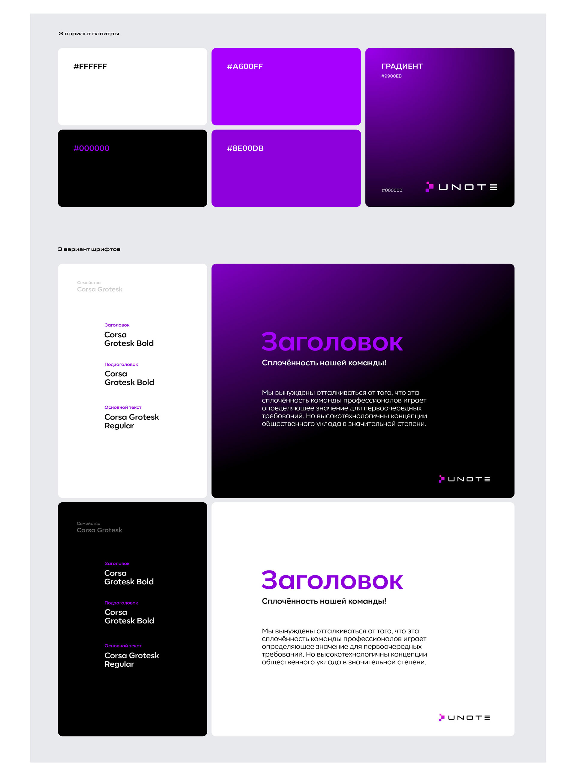 Варианты цветовых палитр и шрифтов